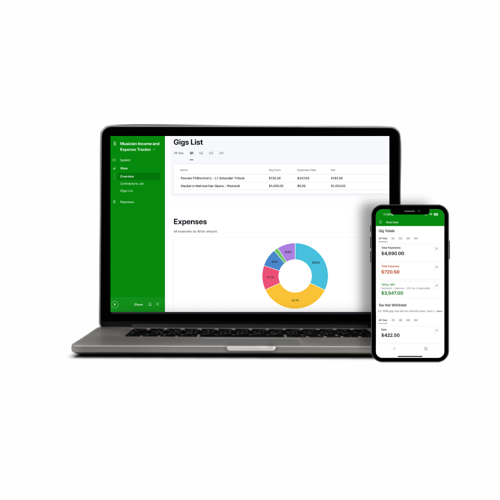 This new version takes everything that worked in the Sheets template and re-imagines it in a more flexible, modern format. It connects your gigs, expenses, auditions, and contractors automatically so you can focus on the music, not the math.